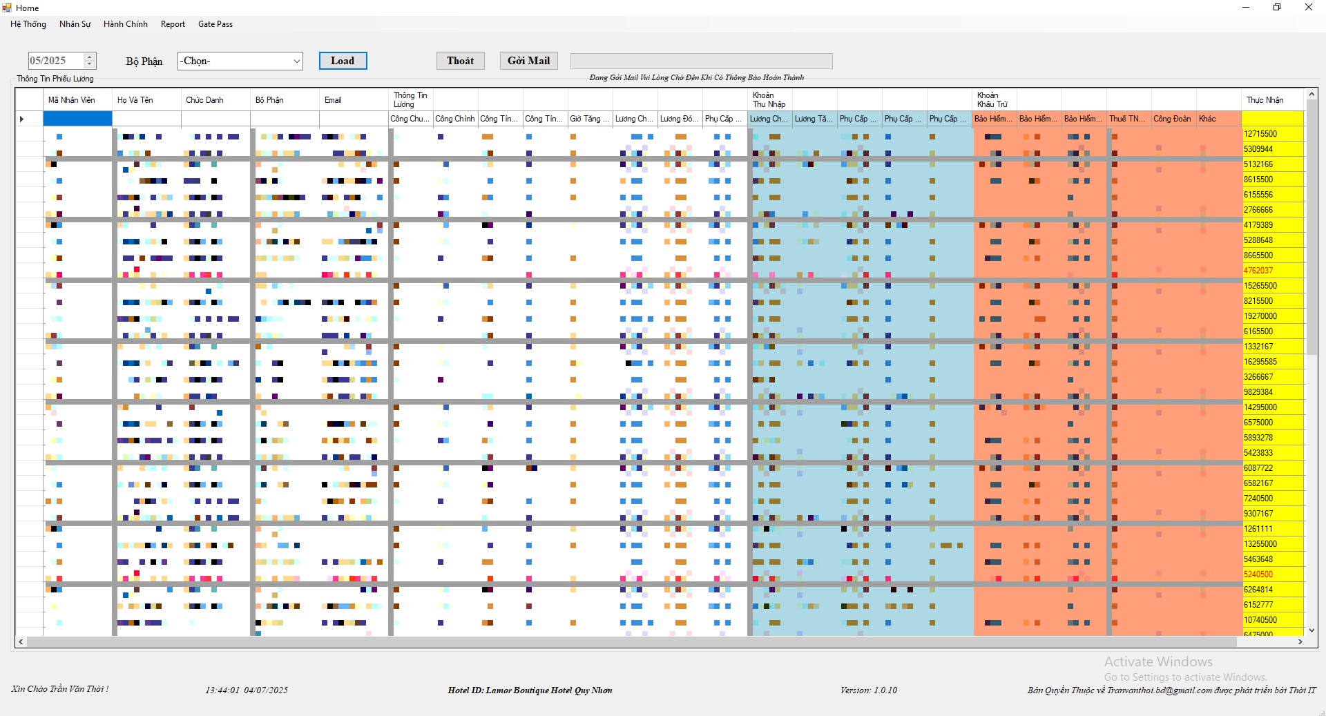 The software has all the basic features of a normal human resource management software. At the same time, there will be advanced features suitable for human resource management in hotels such as: timekeeping interface, work scheduling, overtime registration, timekeeping, salary calculation, sending salary slips via Email/Zalo, managing records, contracts.....